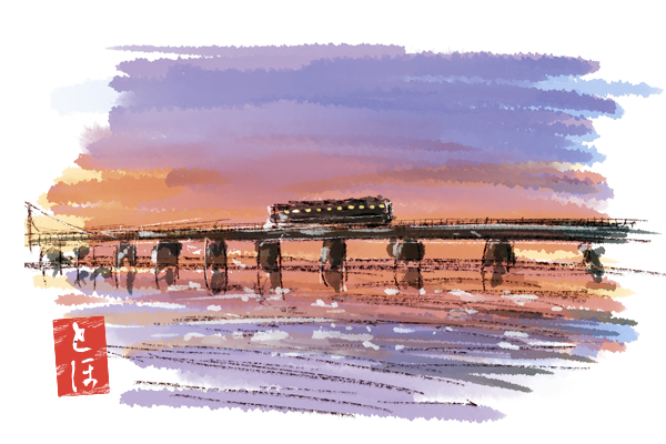 僕らは川での遊びに疲れるとよく線路の上にのぼってこのガーダー橋を渡り、その橋のまん中で海に沈む夕日を眺めて語り合った。海からやってきた無数のカモメたちがいつも僕らを楽しませてくれた。列車がやってきたら逃げ場所もないから、一斉に川に飛び降りるしかない。ずぶ濡れになりながら、僕らは川の中で大声で笑いあったものだ。近くには踏切もなかったから波の音がうるさい時は列車の音に気づかずに、大きな汽笛の音を鳴らされることもあった。